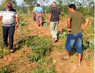Dengan rasa solidaritas, ratusan warga berangkat ke lokasi tanpa komando resmi. Namun, yang mereka temukan hanyalah tanaman ubi yang hancur dan tidak ada jejak alat berat yang diduga digunakan untuk merusak tanaman tersebut.