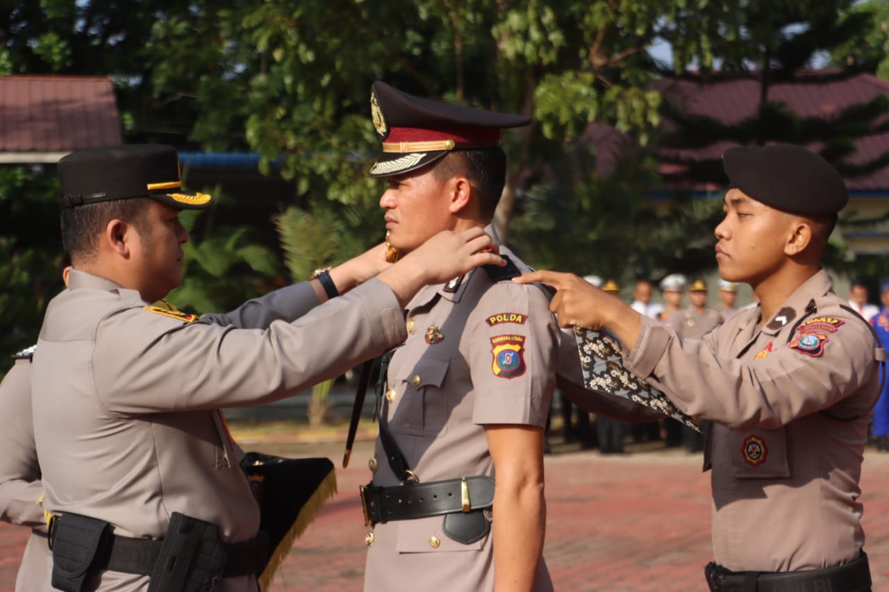 Kapolres Langkat AKBP Faisal Rahmat Husein Simatupang SIK SH MH, memimpin langsung upacara serah terima jabatan Wakapolres Langkat di lapangan Jananuraga Polres Langkat, Kamis (28/03/2024).