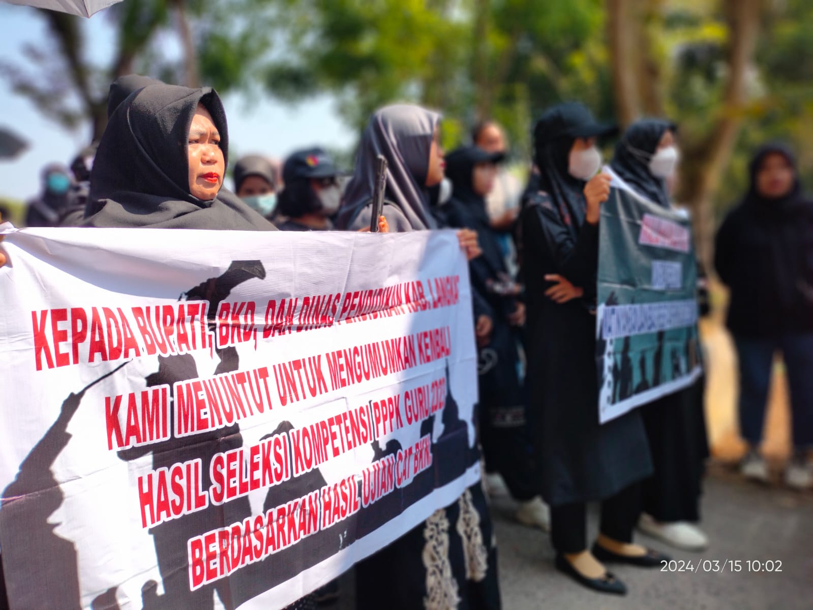 Pj Bupati Langkat diminta mendiskualifikasi guru-guru ‘siluman’ yang dinyatakan lulus pada seleksi PPPK di Langkat,” tegas Dian, diiringi teriakan guru honorer lainnya.