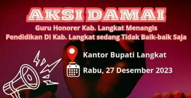 Pada flyer atau selebaran berwarna merah kehitaman yang beredar juga menuliskan kalimat, guru honorer Kab. Langkat menangis pendidikan di Kab. Langkat sedang tidak baik-baik saja.