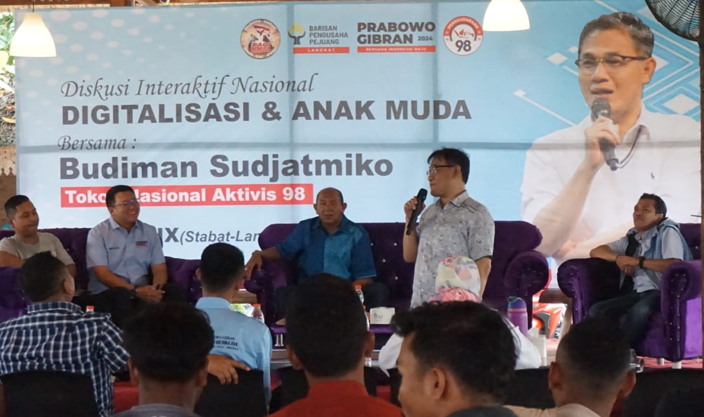 Hal itu di bahas dalam diskusi interaktif nasional, digitalisasi dan anak muda yang digelar relawan Pagi Berkuda (Prabowo Gibran, Berani, Kuat, Amanah) disalah satu Cafe di Kecamatan Stabat, Kabupaten Langkat, Selasa (6/2/2024).