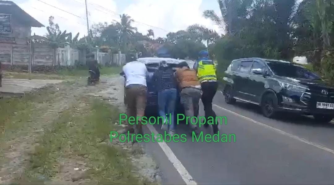 Melihat hal mobil jenis sedan Ford tersebut dalam kondisi mogok di badan jalan personil Propam Polrestabes Medan dengan cepat langsung mendorong mobil tersebut dan mengarahkan untuk bergeser ke badan jalan sehingga kemacetan yang sudah panjang pun dapat kembali lancar.