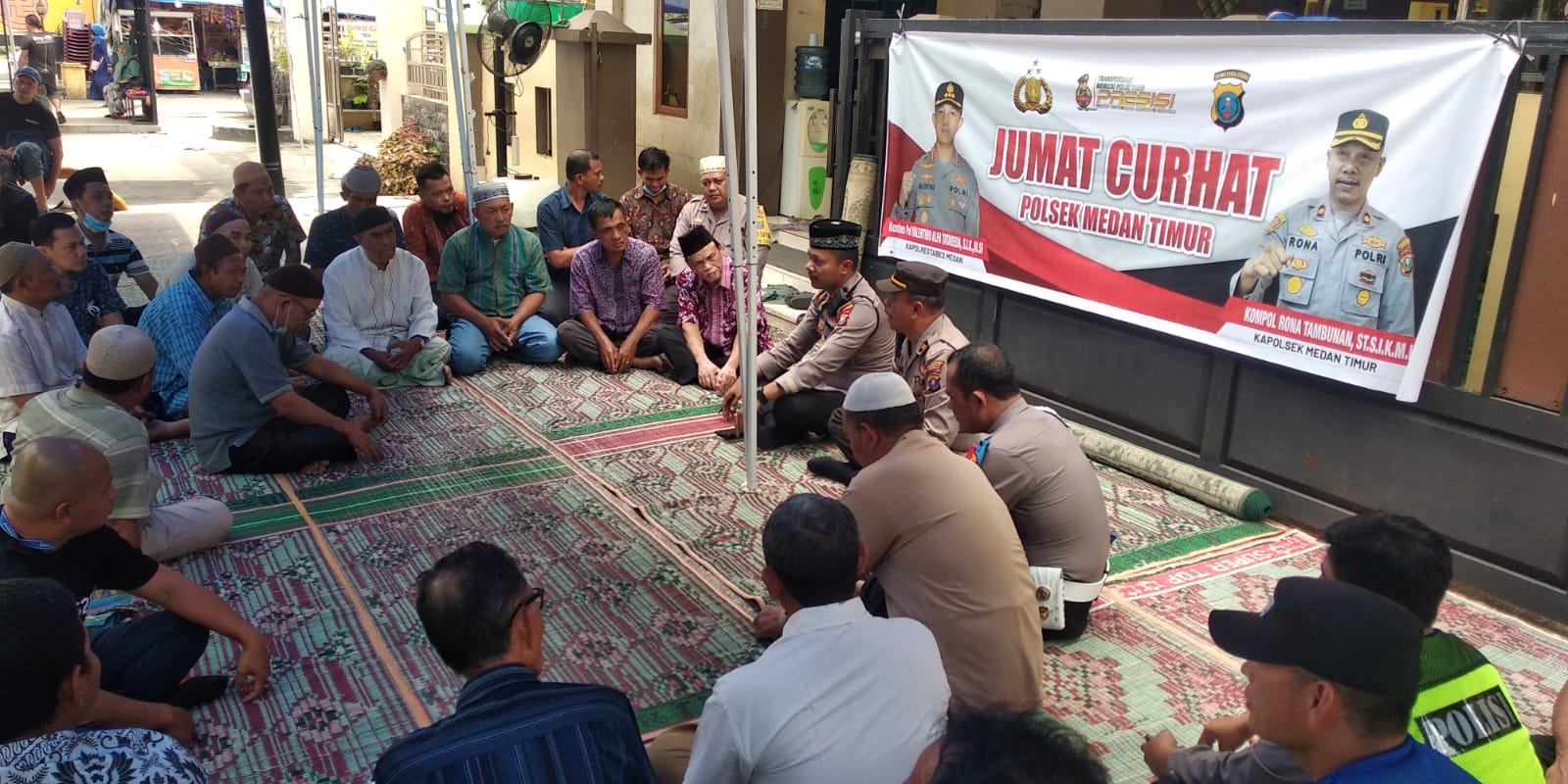 Kapolsek Medan Timur, Kompol Rona Tambunan menggelar kegiatan Jumat Curhat di Masjid Al Hidayah Jalan Jawa Medan, Jumat (30/12/2022).