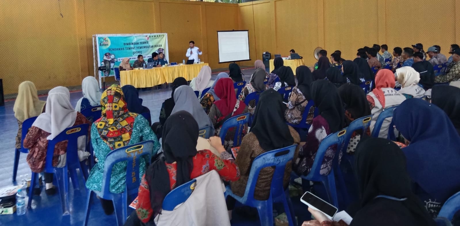 Sebanyak 156 orang Pengawas Tempat Pemungutan Suara (PTPS) Pemilu 2024 mengikuti Bimtek yang di gelar Panitia Pengawasan Pemilihan Kecamatan (Panwascam) Hinai, Sabtu (10/02/2024).