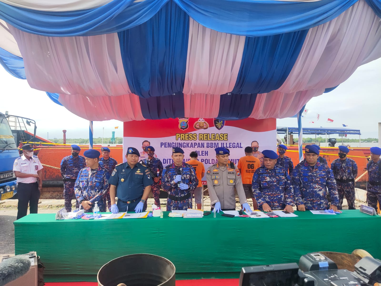 Direktorat Polisi Air dan Udara Polda Sumatera Utara melakukan pengungkapan penyelewengan Bahan Bakar Minyak (BBM) di Perairan Laut Belawan, Senin (05/12/2022).