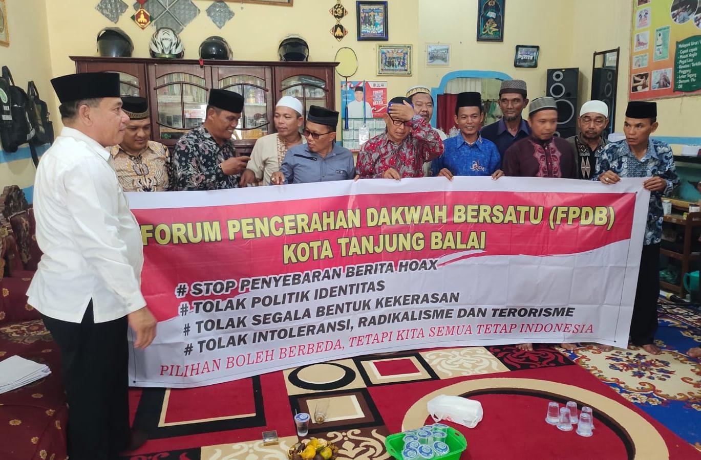 Ustadz Muhammad Yunus, pengurus FPDB Kota Tanjung Balai beserta anggotanya saat ditemui dikediamannya di daerah Kota Tanjung Balai, Sabtu (27/1/2024) pagi, mengatakan dirinya mendukung penuh Pemilu 2024 dan berharap agar tercipta Pemilu damai tanpa perpecahan ditengah masyarakat.