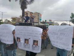 Diantara poster tertulis ‘Bupati dan Ketua DPRD Madina Gagal Menjadi Lembaga Eksekutif dan Legislatif Karena Diduga Ada Permainan PPPK dan Mencoreng Nama Baik Kabupaten Madina’.