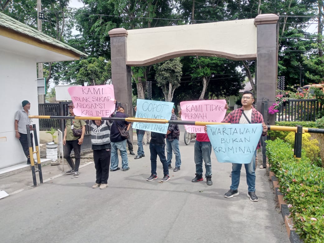 Dalam aksi solidaritas wartawan meminta klarifikasi dan konfirmasi Kepala Kejaksaan Negeri Langkat, Mei Abeto Harahap atas tindakan Kepala Seksi (Kasi) Intelijen Kejari Langkat yang dinilai arogansi dan merendahkan wartawan.