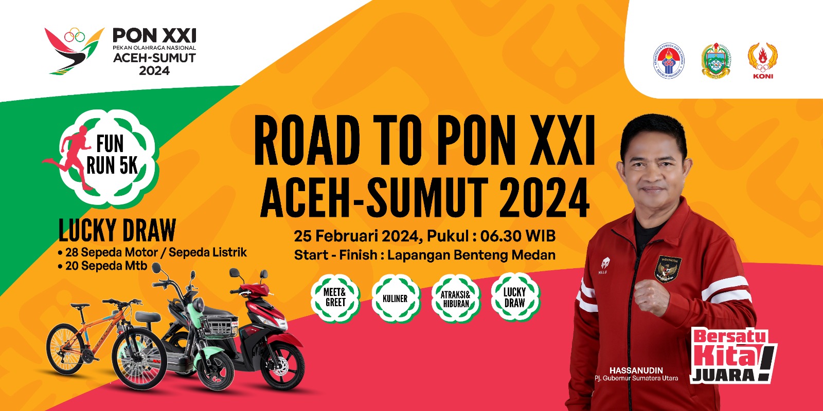 Dalam rangka menggelorakan semangat pesta Pekan Olahraga Nasional (PON) XXI Sumut-Aceh tahun 2024, Pemerintah Provinsi Sumatera Utara menggelar Fun Run.