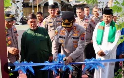 Kapolres Batubara AKBP Jose DC Fernandes SIK meresmikan sebuah bangunan Musholla Yusuf di areal kantor Polsek Labuhan Ruku, Jumat (14/4).