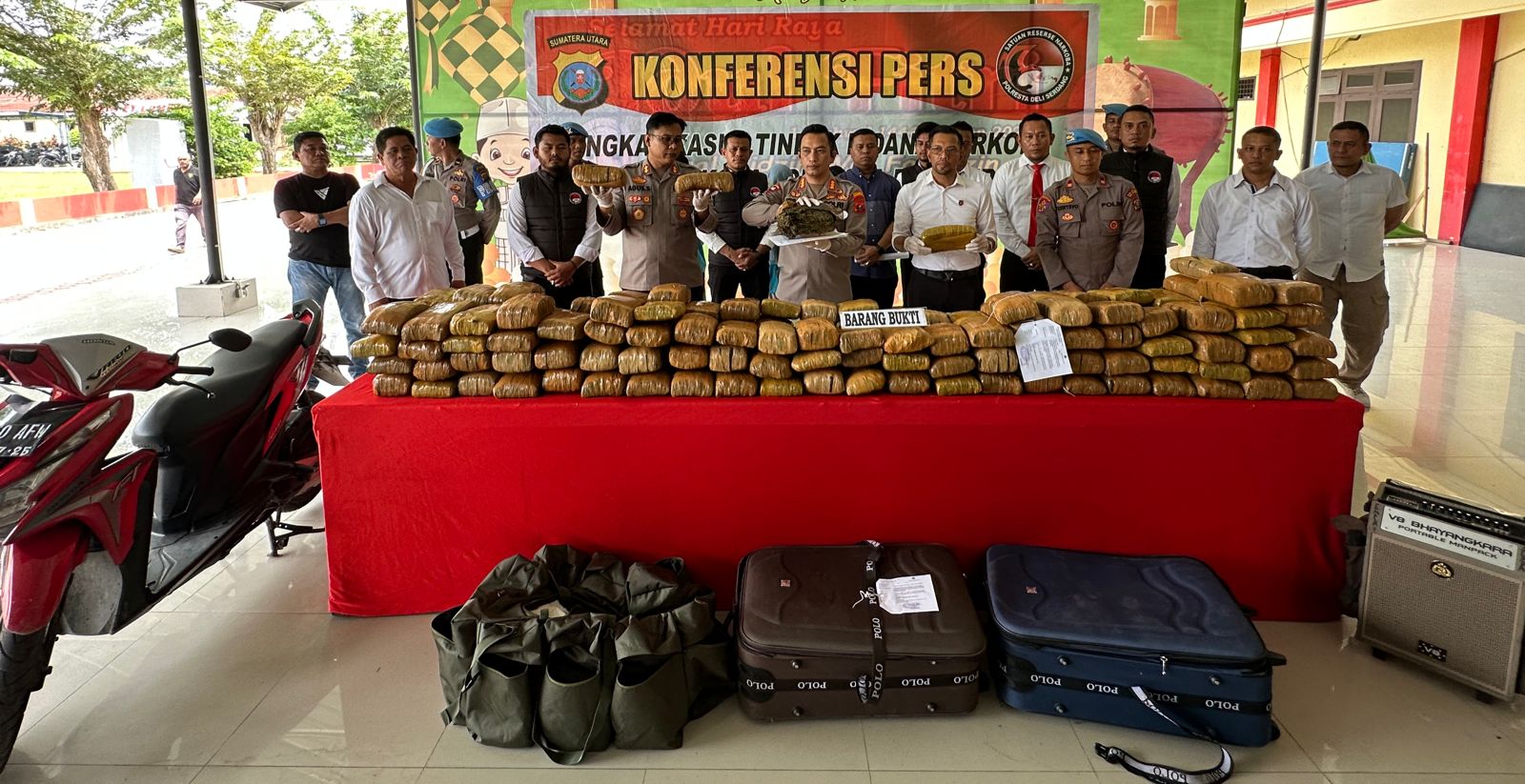 Personil Sat Res Narkoba Polresta Deli Serdang Berhasil mengungkap dan mengamankan Pelaku Penyalahgunaan Narkotika Jenis Ganja yang telah dilakban seberat 173 kg, Senin (22/05/23).