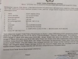 mengeluarkan darah dan sampai ia oyong atas kejadian tersebut, Zerif Andika membuat Laporan di Polrestabes Medan dengan nomor polisi: STTLP/B/780/III/2024/SPKT/ POLRESTABES MEDAN POLDA SUMATERA UTARA tertanggal 7 Maret 2024.