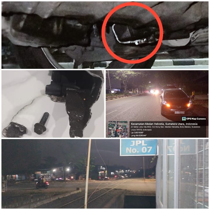 Pasalnya mobil sedang yang ditumpangi oleh Ibu Vidi sekeluarga mendadak berhenti tersangkut dan mengeluarkan suara yang keras karena mesin berbenturan dengan besi rel kereta api, dimana aspal di sela sela rel tersebut berlubang dan mobil yang ditumpangi oleh sekeluarga tersebut tidak bisa berjalan dikarena kan mesin udah pecah dan olinya keluar Pada Rabu 6/3/2024 malam.