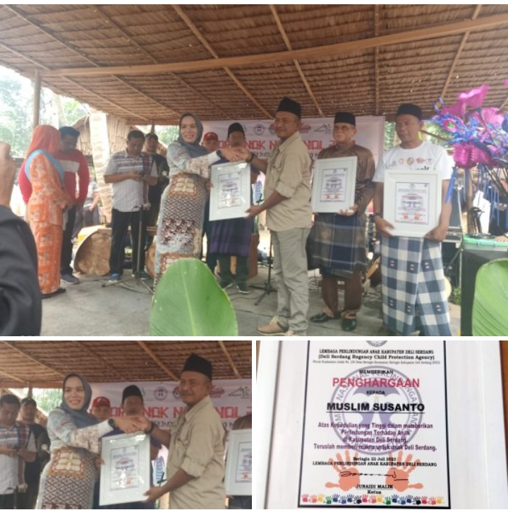Lembaga Perlindungan Anak (LPA) Deliserdang menobatkan Muslim Susanto sebagai Tokoh Peduli Anak atas kepedulian yang tinggi dalam memberikan perlindungan terhadap anak. Penobatan yang dilakukan dalam rangka bentuk memperingati Hari Anak Nasional (HAN) tahun 2023 yang digelar di obyek wisata kuliner “Pasar Kamu” Desa Denai Lama, Kecamatan Pantai Labu Kabupaten Deli Serdang, Minggu (23/7).