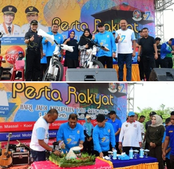 Kegiatan ini dalam rangka Hari Jadi ke-77 Kabupaten Deli Serdang. Hari ini, ada beberapa kecamatan mengadakan kegiatan (Pesta Rakyat) yang sama. Tetapi yang paling penting adalah kita sebagai masyarakat bangga menjadi warga Kabupaten Deli Serdang,” kata Wabup ketika melepas peserta konvoi.