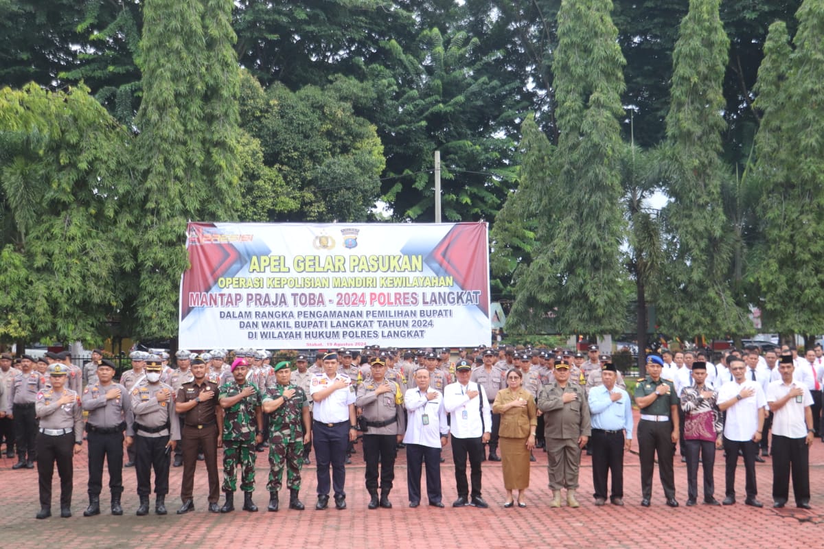 Polres Langkat melaksanakan Apel Gelar Pasukan Operasi Kepolisian Mandiri Kewilayahan “Mantap Praja Toba 2024” pada Senin pagi, 19 Agustus 2024.