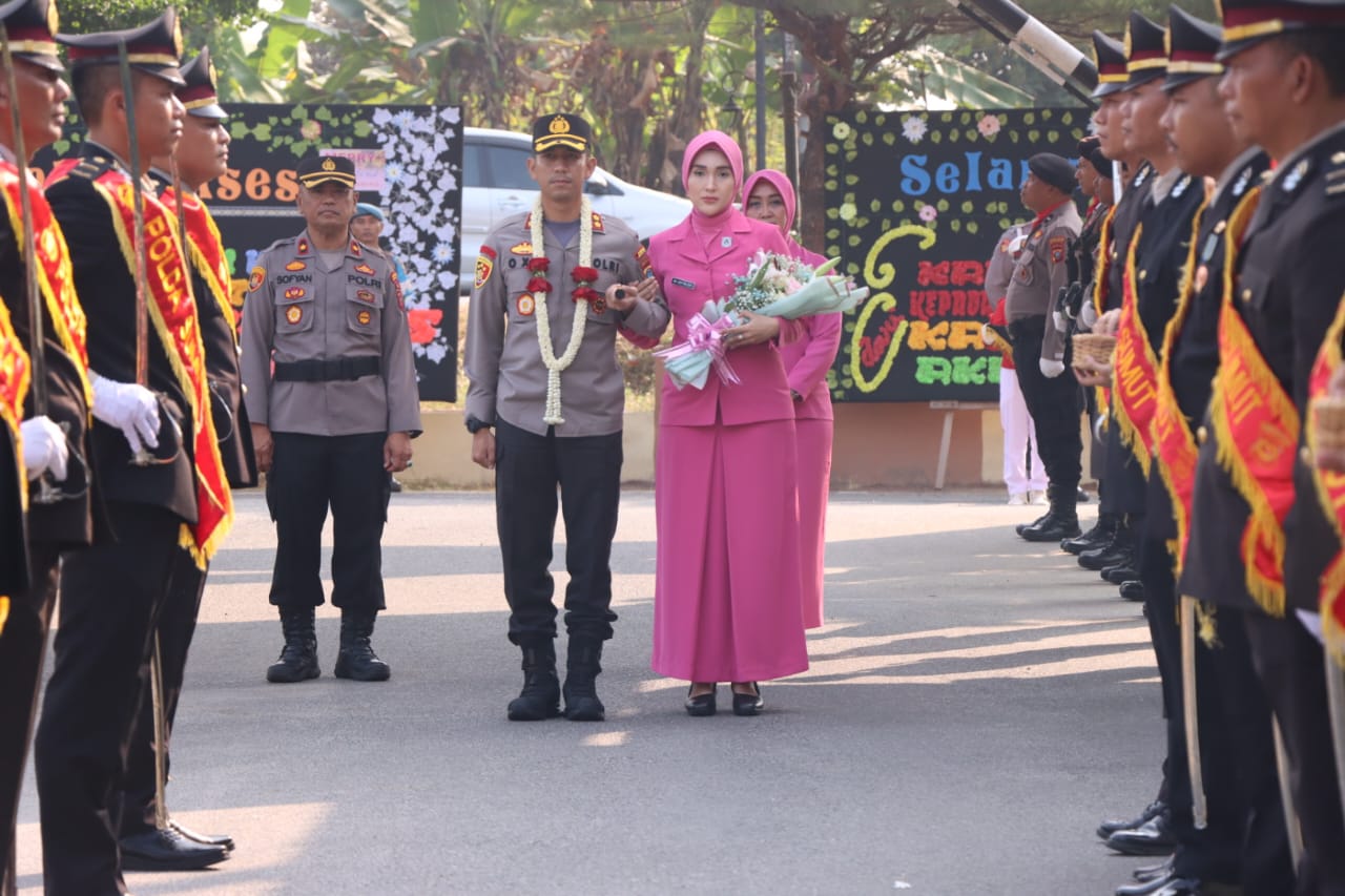 Penyambutan dan pengalungan bunga kepada Kapolres Serdang Bedagai dan Ibu oleh Pocil Polres Serdang Bedagai