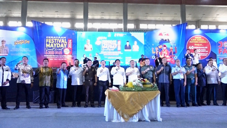Pemerintah Provinsi Sumatera Utara (Pemprov Sumut) gelar perayaan Festival Mayday (Hari Buruh Internasional) 2024, di Gedung Serba Guna Pemrovsu, Jalan Williem Iskandar, Kecamatan Percut Sei Tuan, Kabupaten Deli Serdang, Sumatera Utara (Sumut), Rabu (08/05/2024) pagi.