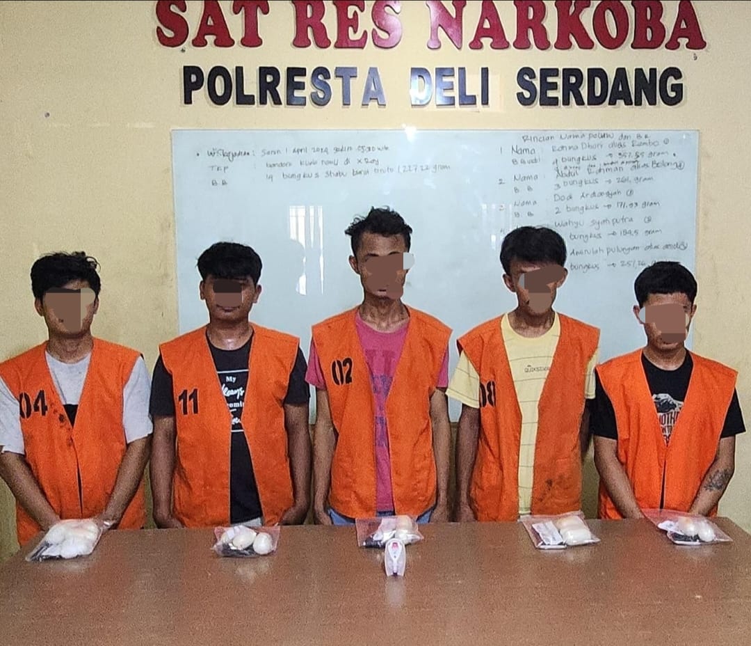 Kasat Res Narkoba Polresta Deli Serdang, Kompol. Sebastian R.S. Saragih, S.Sos., SIK., mengatakan,” Benar kita sudah amankan kelima Pelaku beserta barang bukti berupa Narkotika Jenis Shabu dengan Jumlah total Bruto 1.230 gram, Selanjutnya para pelaku masih dalam pemeriksaan guna proses hukum dan mempertanggunggjawabkan perbuatannya” pungkasnya.