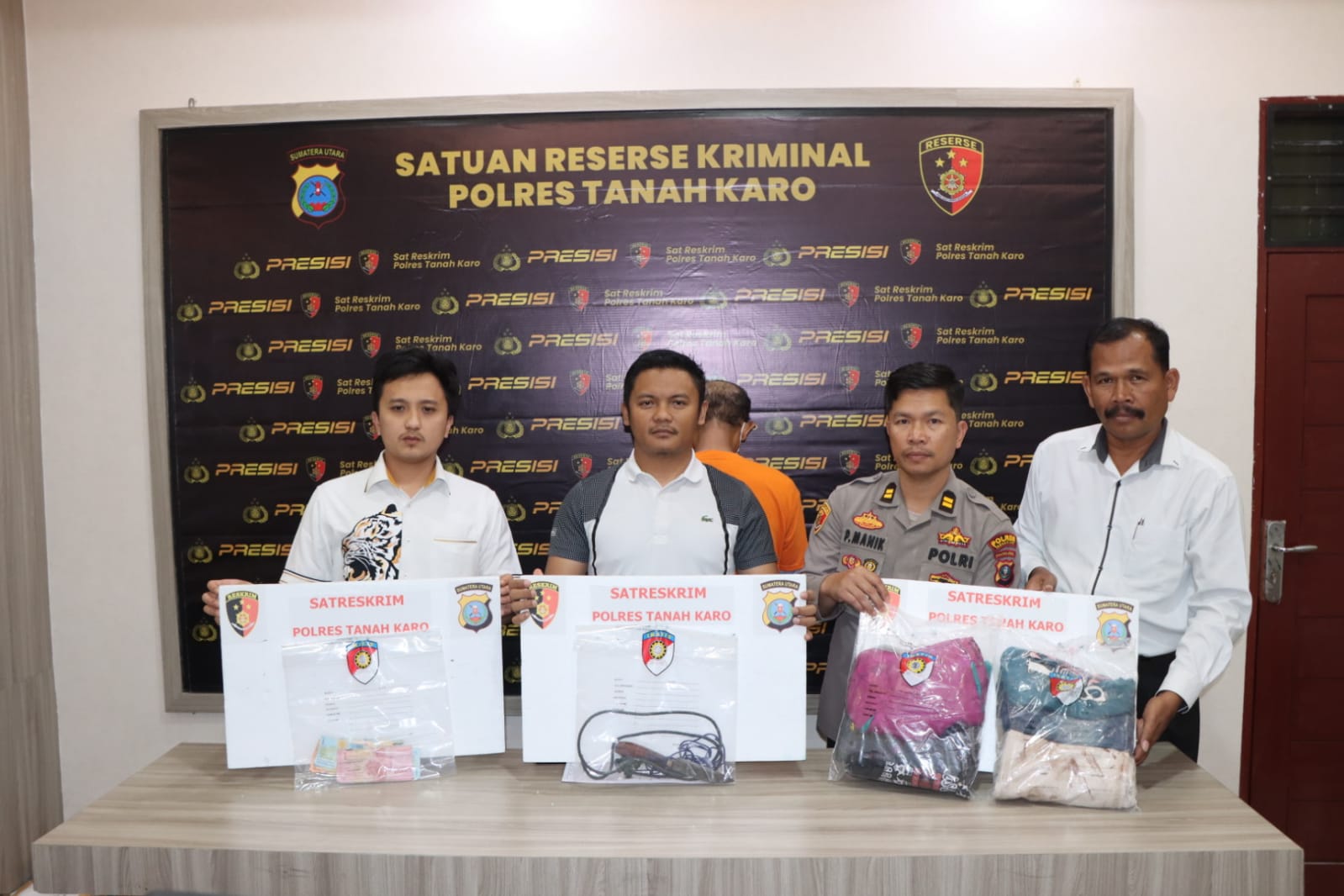 “Hari ini kita merilis keberhasilan penangkapan pelaku pencurian dengan kekerasan yang terjadi di Berastagi. Pelaku berhasil diamankan berkat kuasa Tuhan dan kerja keras dari tim Reskrim Polres Tanah Karo dan Polsekta Berastagi,” Ucap Kasat Reskrim.