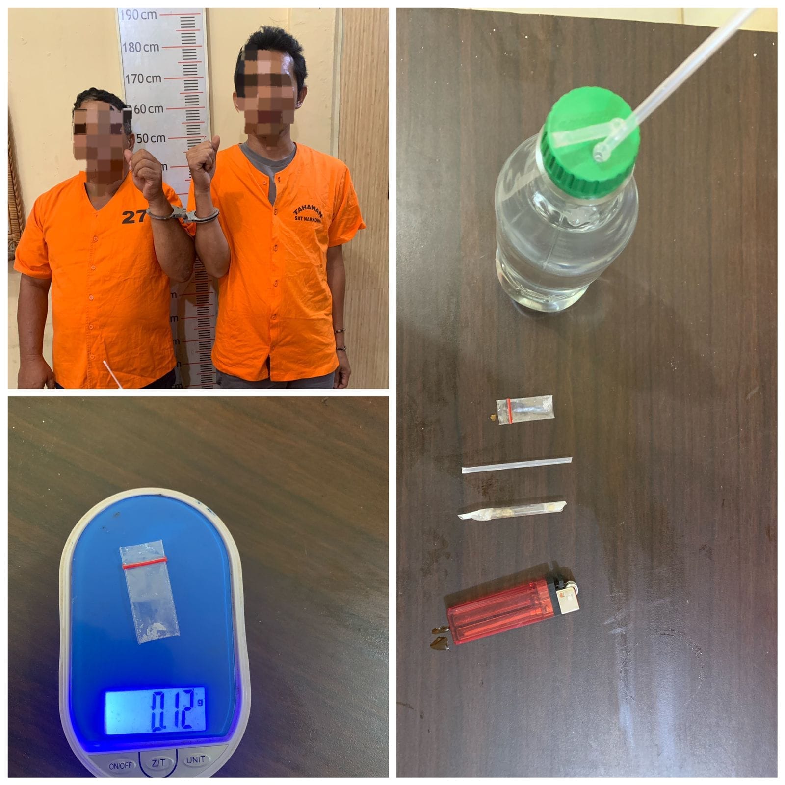 Barang bukti yang berhasil diamankan dari tangan tersangka antara lain 1(Satu) buah bong berisi air dan alat isap, 1 ( Satu) buah plastik putih berisi cristal putih diduga sisa pemakaian sabu, 1 (satu) buah mancis warna merah., 1 (satu) buah kaca pirek kecil sebagai alat isap, 1 (satu) buah pipet sebagai alat isap.